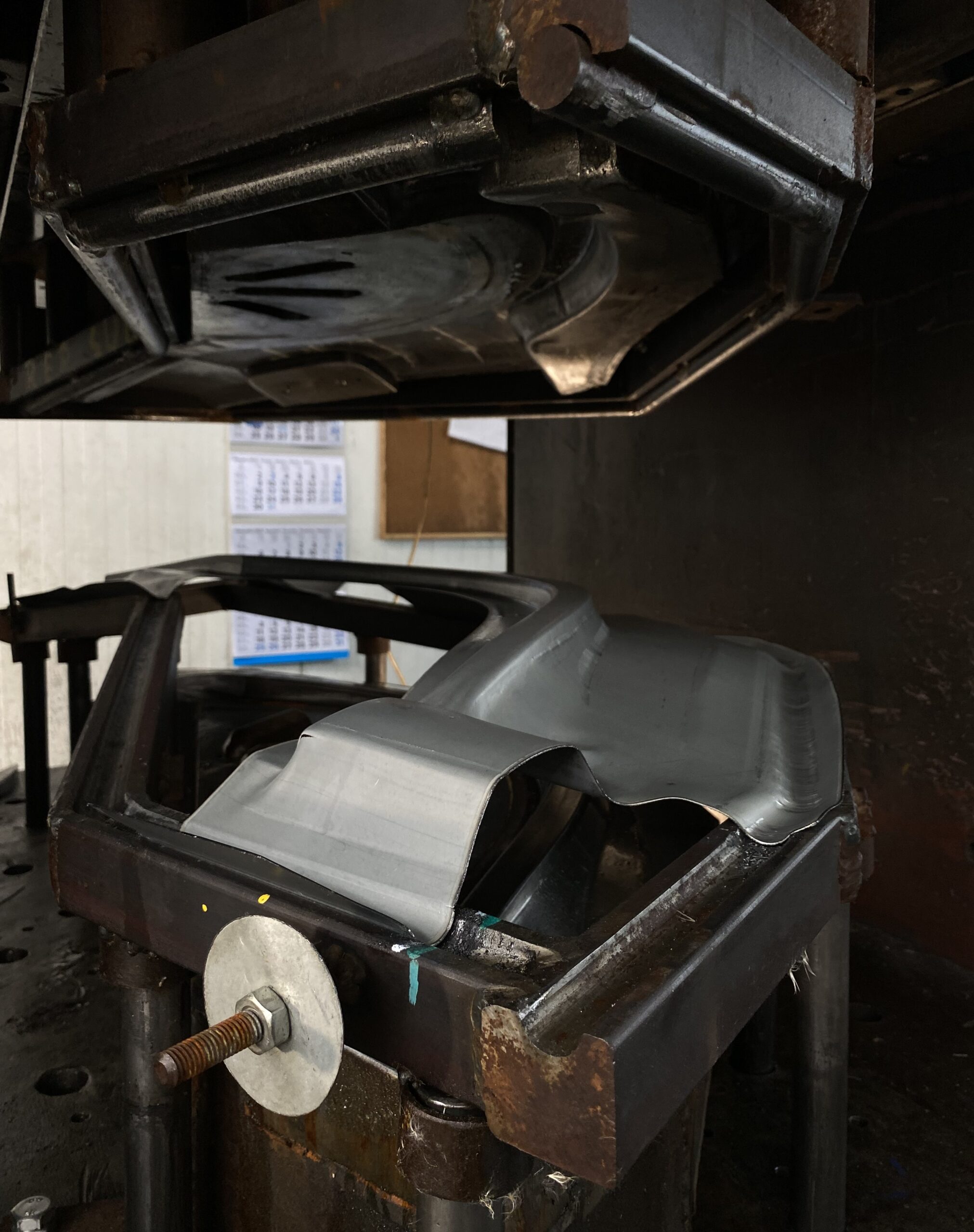 Bei entsprechendem Entwurf des Preßwerkzeugs können wir Stahlelementen und z.B. Aluelementen zugleich herstellen (Rennsport).